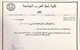 اعلان نتائج الدور الاول للعام الدراسي 2016-2017