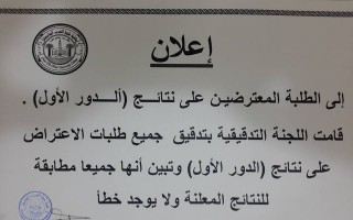 نتائج اعتراضات قسم المحاسبه الدور الاول 2015-2016